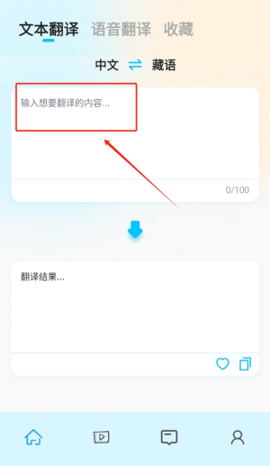 2、输入需要翻译的文本内容,将中文或藏文信息准确录入系统,以获取精确的翻译结果。