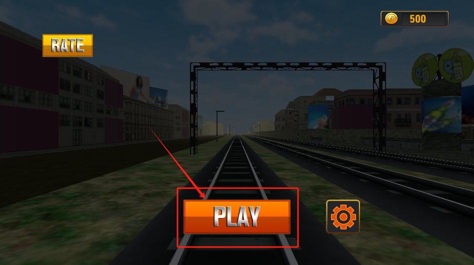 1、点击中间橙色PLAY按钮开始游戏,左上角可以评分,右上角显示金币数量。