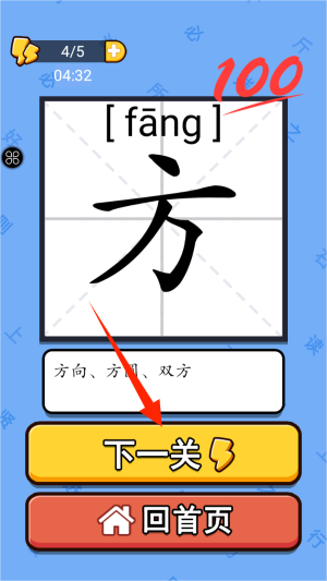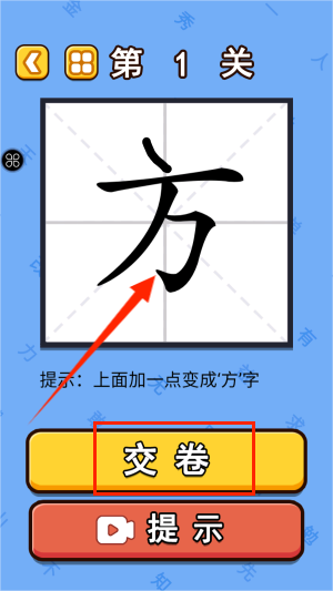 3、当成功将原字改造成"方"字后,轻触确认按钮提交答案。系统会进行智能识别,正确时触发烟花绽放特效。
