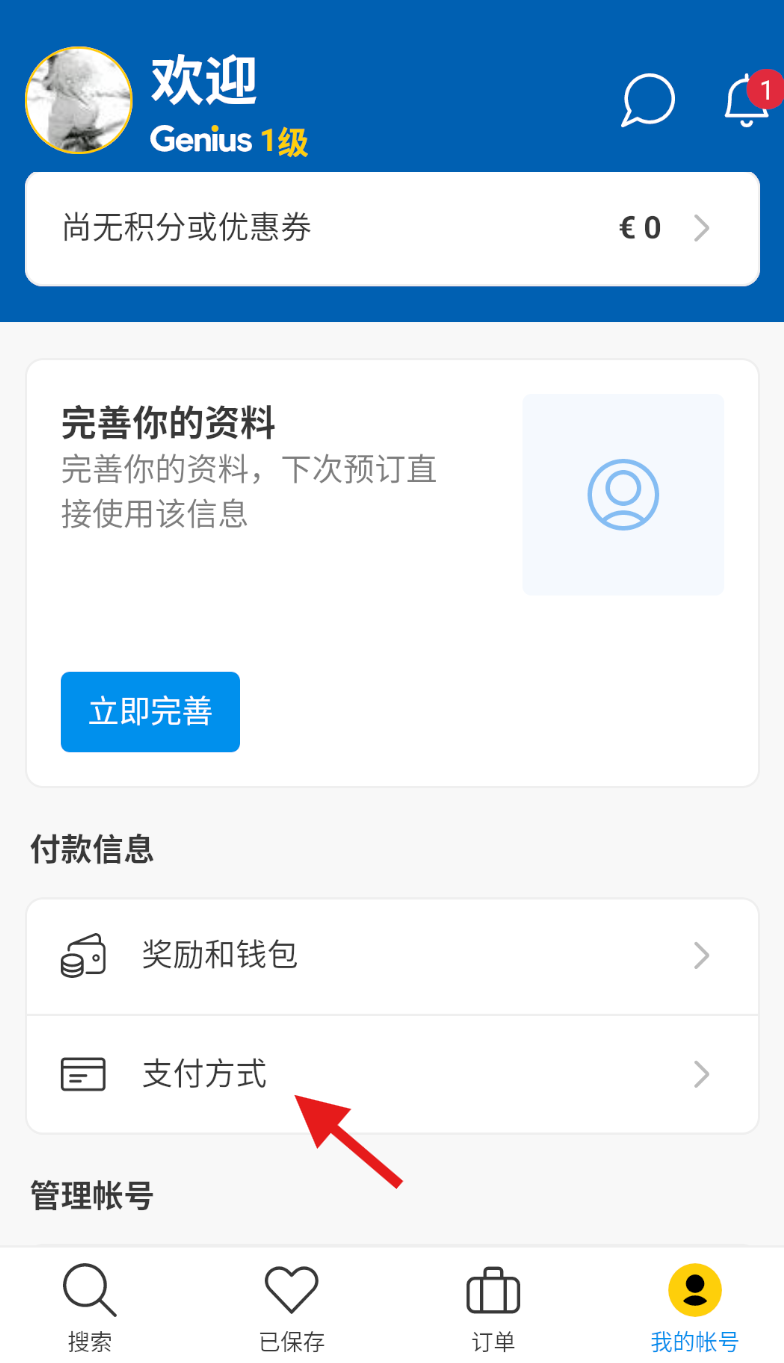 2、在 “我的账号” 页面中,找到 “支付方式” 选项并点击,进入到管理支付方式的相关界面。