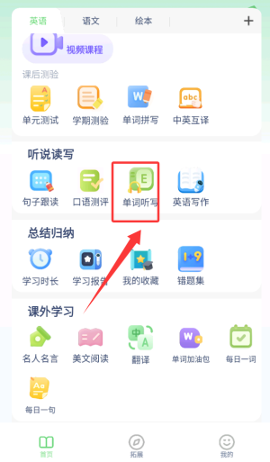 4、智能听写功能支持自定义词库,实时评测单词拼写准确度。