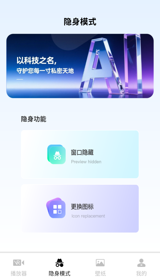 2、开启"隐私模式"后,支持应用窗口隐藏和图标伪装,有效保护您的使用痕迹不被发现。