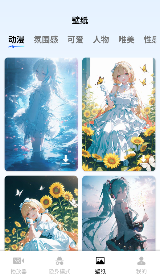 3、"主题壁纸"库提供动漫、唯美、氛围感等多样化风格壁纸,可自由更换播放器背景主题。