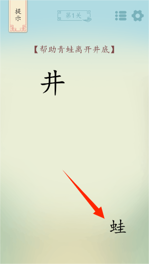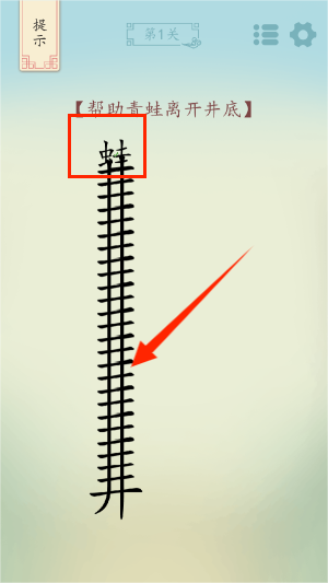 1、启动游戏后,画面显示被困在深井中的小青蛙,需要通过智慧搭建逃生路线。