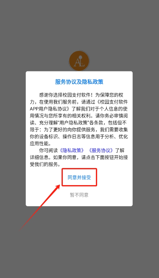 2、打开后会看到软件协议,大概看看内容,点一下同意,这步不能少,不然没法接着用软件里的各种功能,得注意哦。