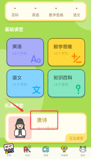 3、唐诗学习专区通过动画与诵读结合的方式展现经典诗文。