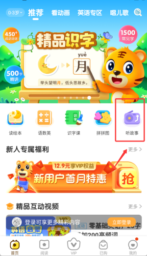 3、绘本阅读专区提供丰富电子绘本资源,配有标准发音朗读功能。