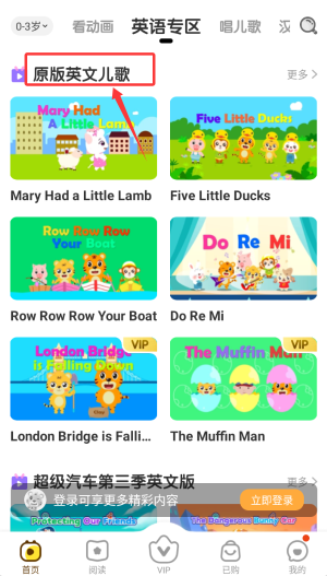 4、英文儿歌视频库收录经典原版作品,帮助培养英语语感与发音。