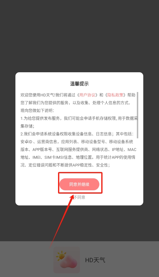 1、下载安装后打开,同意协议并允许定位,首页会显示当前位置的实时天气、温度等信息。