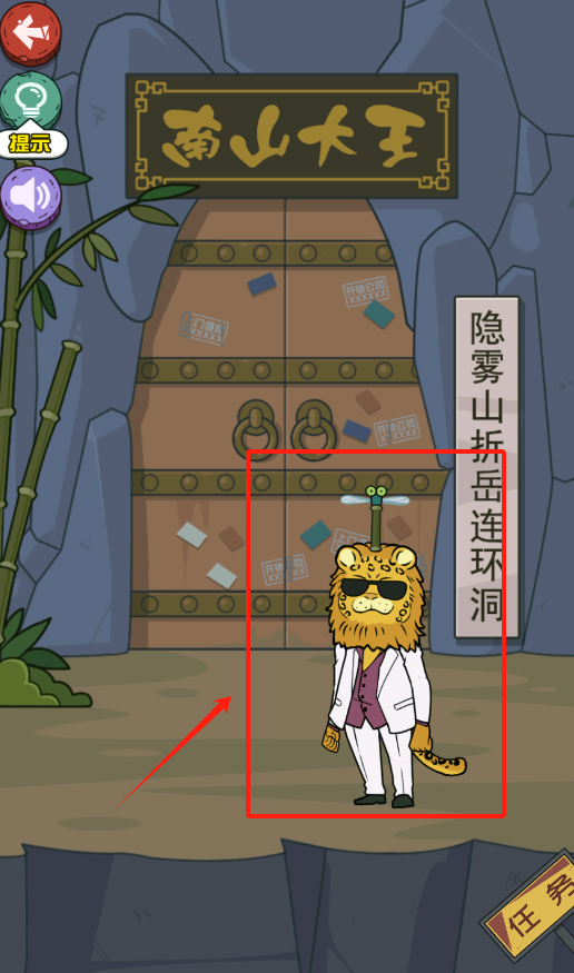 3、看到南山大王牌匾别慌,按屏幕提示操作,头顶蜻蜓会帮你指路。
