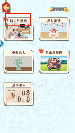 2、从关卡列表中选取"找出私房钱"玩法,开启寻找隐藏资金的趣味探索。