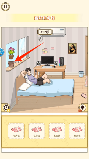 4、例如选中窗台摆放的绿植盆栽,轻触后即可将资金藏入其中完成隐藏任务。
