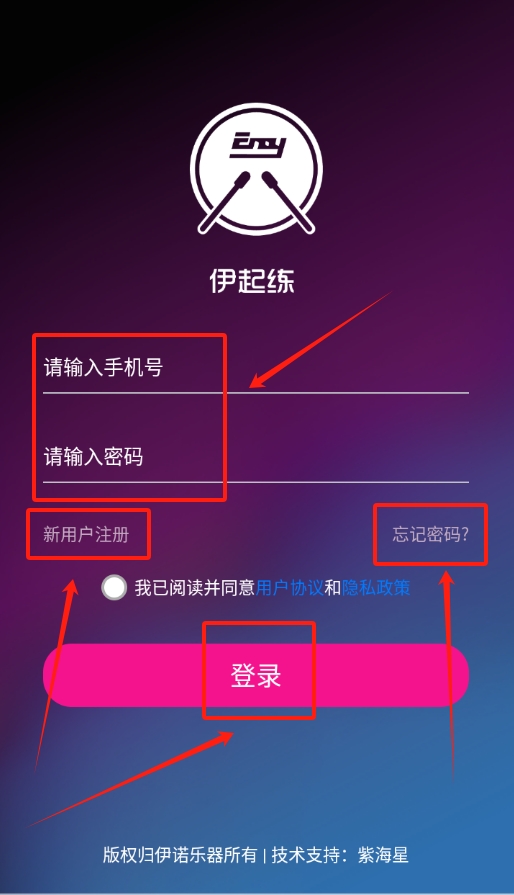 1、下载安装后打开,同意协议并注册账号,按照提示激活并连接智能哑鼓设备,完成配对后即可使用。