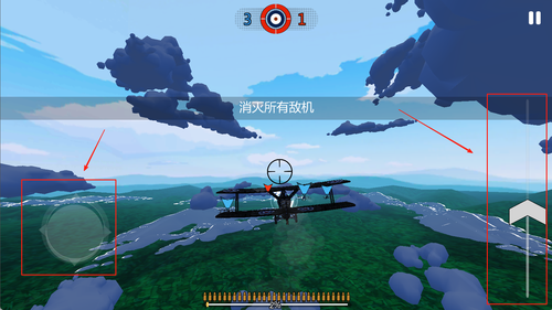 2、左侧摇杆控制飞机方向与姿态,包括转向、俯冲、爬升等动作,灵活操控才能避开敌方火力并精准锁定目标。