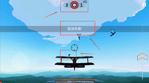 1、通过左右摇杆分别控制飞行方向与速度,在空中灵活穿梭躲避敌机攻击的同时寻找反击机会完成击杀任务。